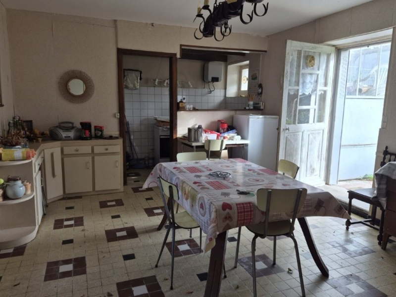 Maison ancienne de centre bourg - 118 m² habitables comprenant au rdc: Cuisine/salle à manger - Séjour - 3 chambres - Salle d'eau - wc indépendant - Grenier aménageable - Cave. Atelier avec préau - Terrain avec puits - L'ensemble sur 1916 m² - Classe énergétique à venir. Raccordée au tout à l'égout - Toiture neuve -