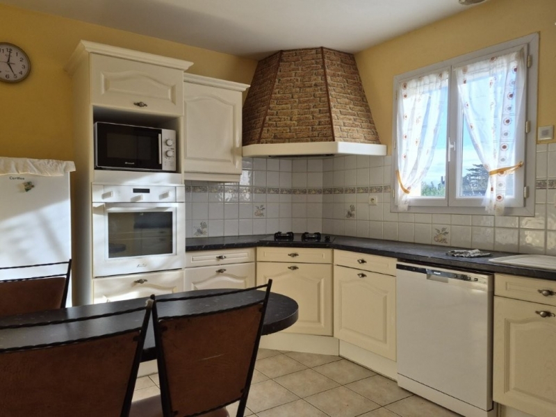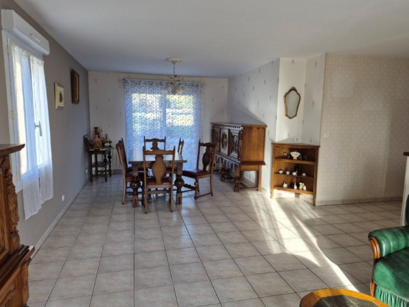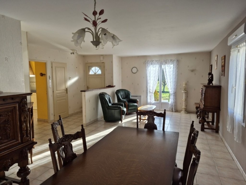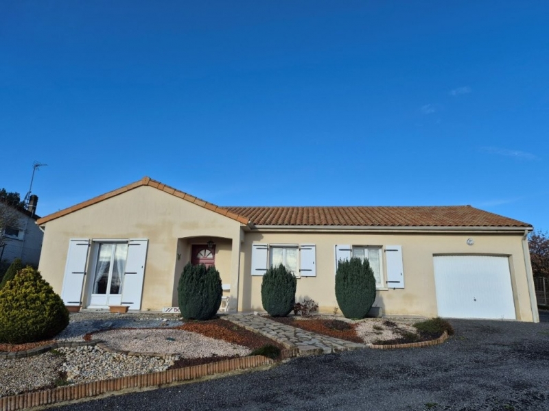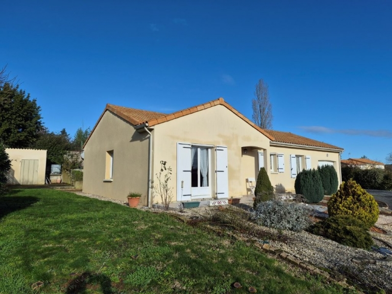 Maison de plain pied de1999, proche centre bourg - Maison de 88 m² habitables, comprenant: entrée - Salon/salle à manger - Cuisine aménagée - Dégagement - 2 chambres - Bureau - Salle d'eau - wc indépendant - Buanderie/cellier et garage attenant - Terrain clos avec atelier et abri de jardin - L'ensemble sur 944 m² - Classe énergétique D - Double Vitrage PVC - Chauffage électrique - Volets électriques - Terrasse - Cuisine aménagée - Tout a l'égout - Grenier isolé -